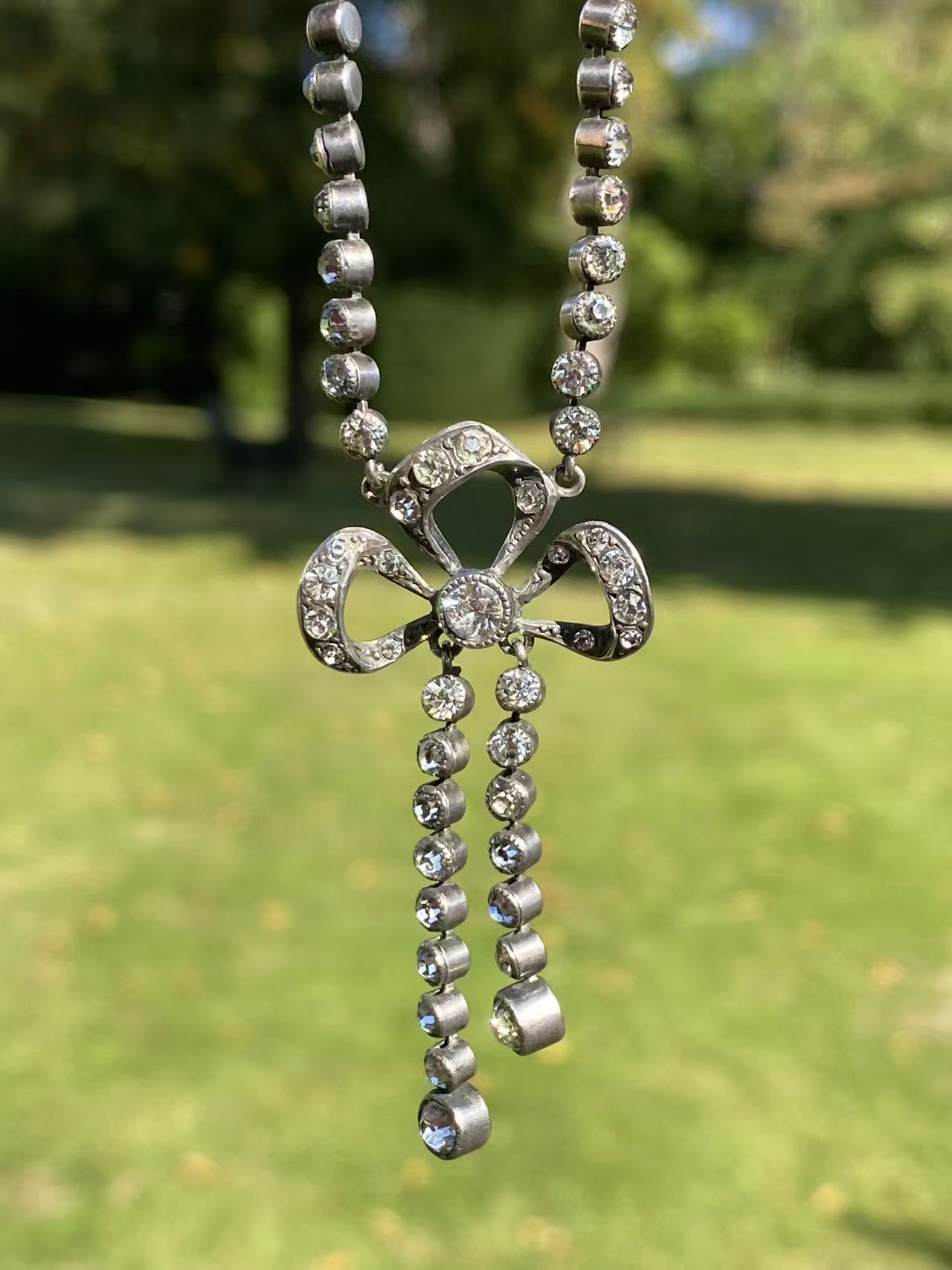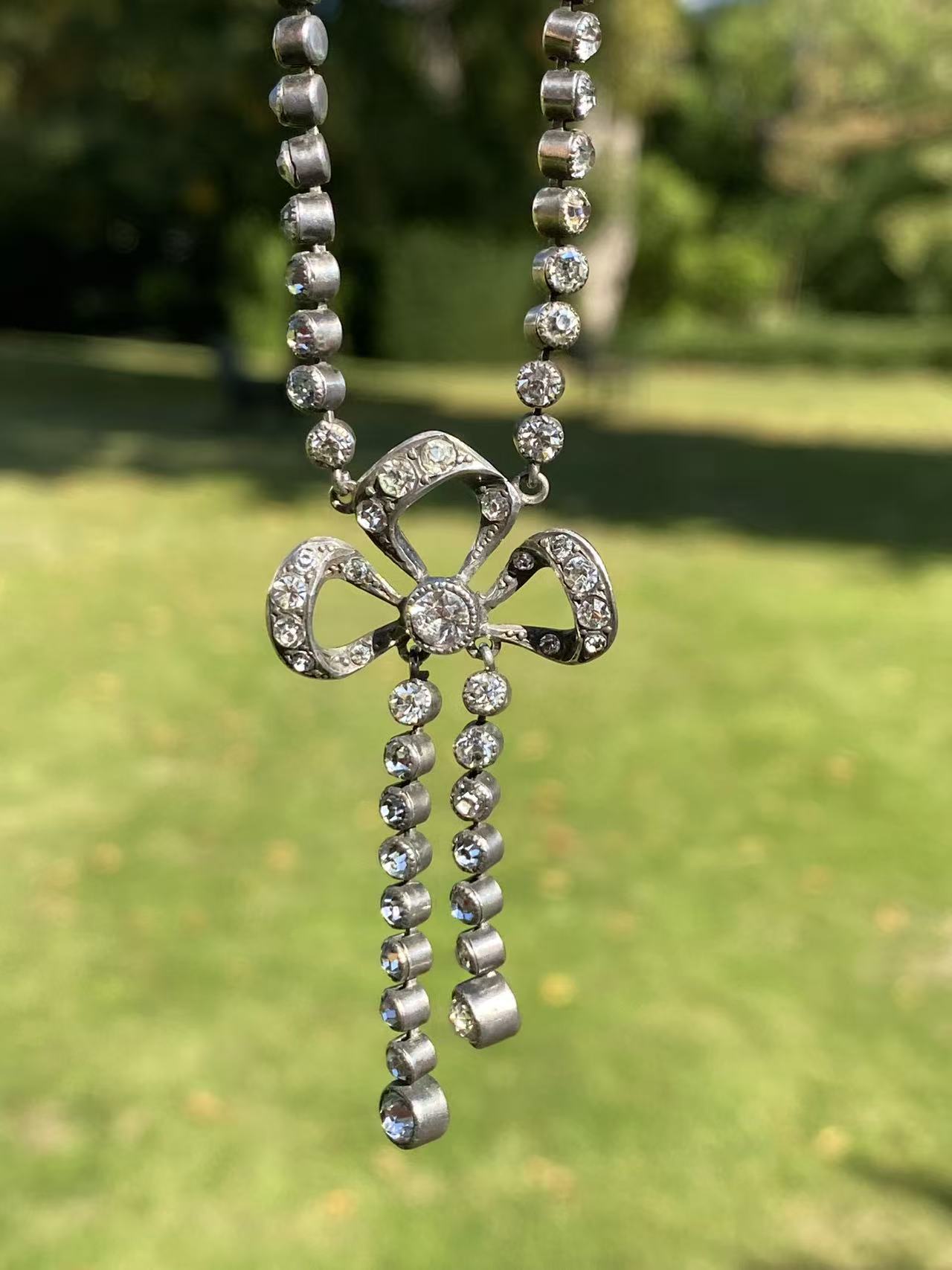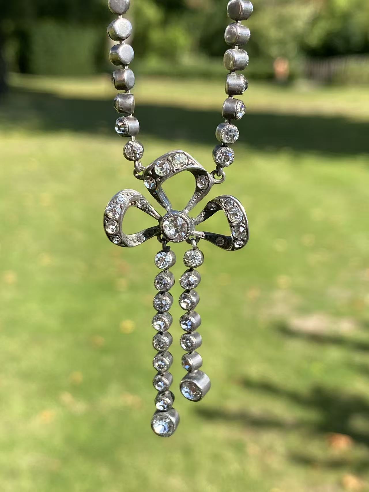 VICTORIAN SILVER PASTE CLOSED BACK PENDANT WITH SILVER CHAIN