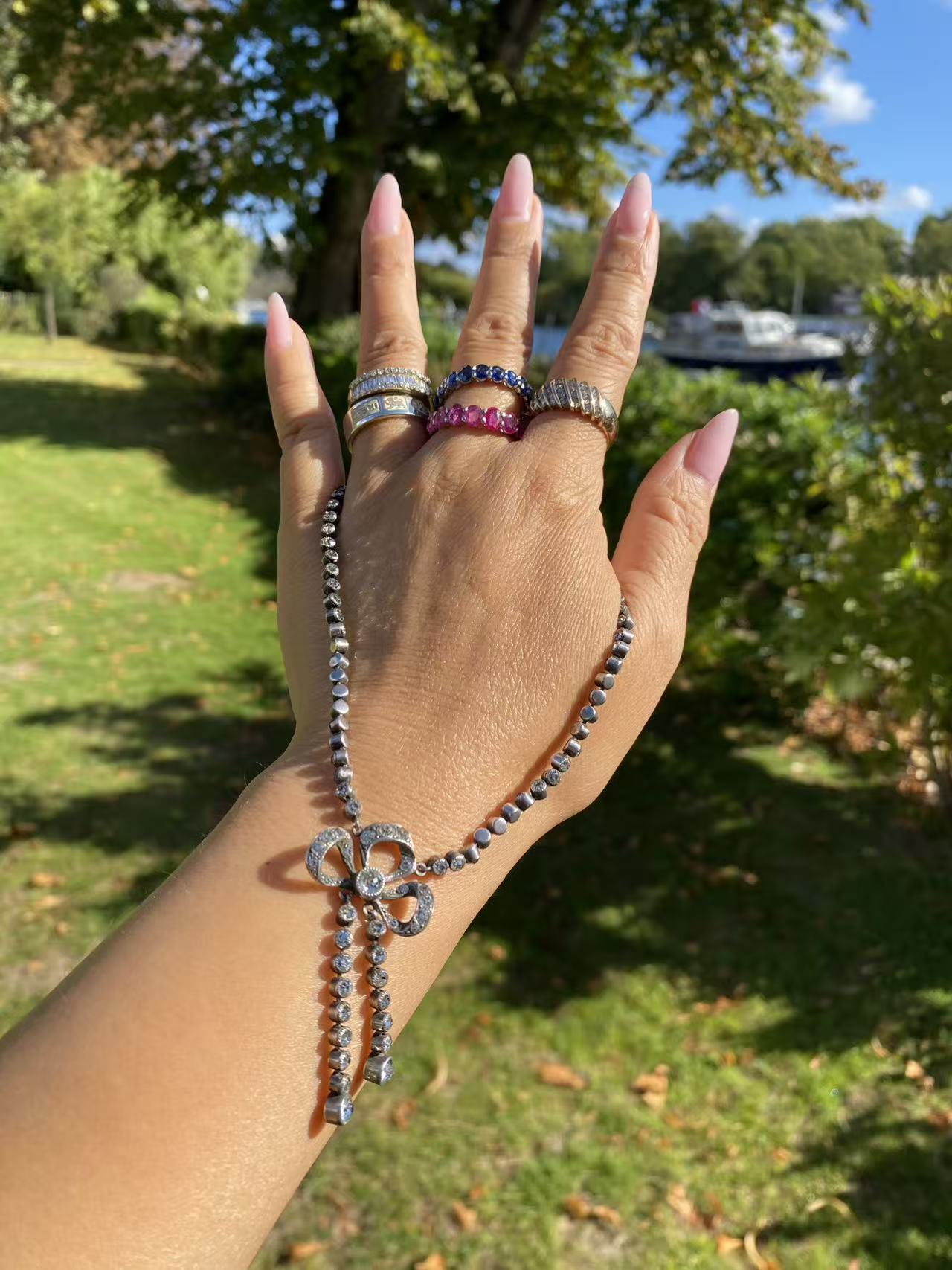 SOLD OUT SUBJECT : VICTORIAN SILVER PASTE CLOSED BACK PENDANT WITH SILVER CHAIN 编号:68-5906 【奢匙SHECH】英国纯银paste维多利亚时期精美古董吊坠配银链 该宝贝为纯银,英国维多利亚时期早期 c1840年代精美吊坠,paste(古董玻璃)镶嵌很闪亮,配银链。该宝贝实物精美,工艺精湛,佩戴漂亮,可收藏。 经过检测 保证质量 重量:吊坠重 3.86g , 银链重 2.58g 尺寸:银链全长 42cm , 吊坠全长约 3.7cm 宽约...