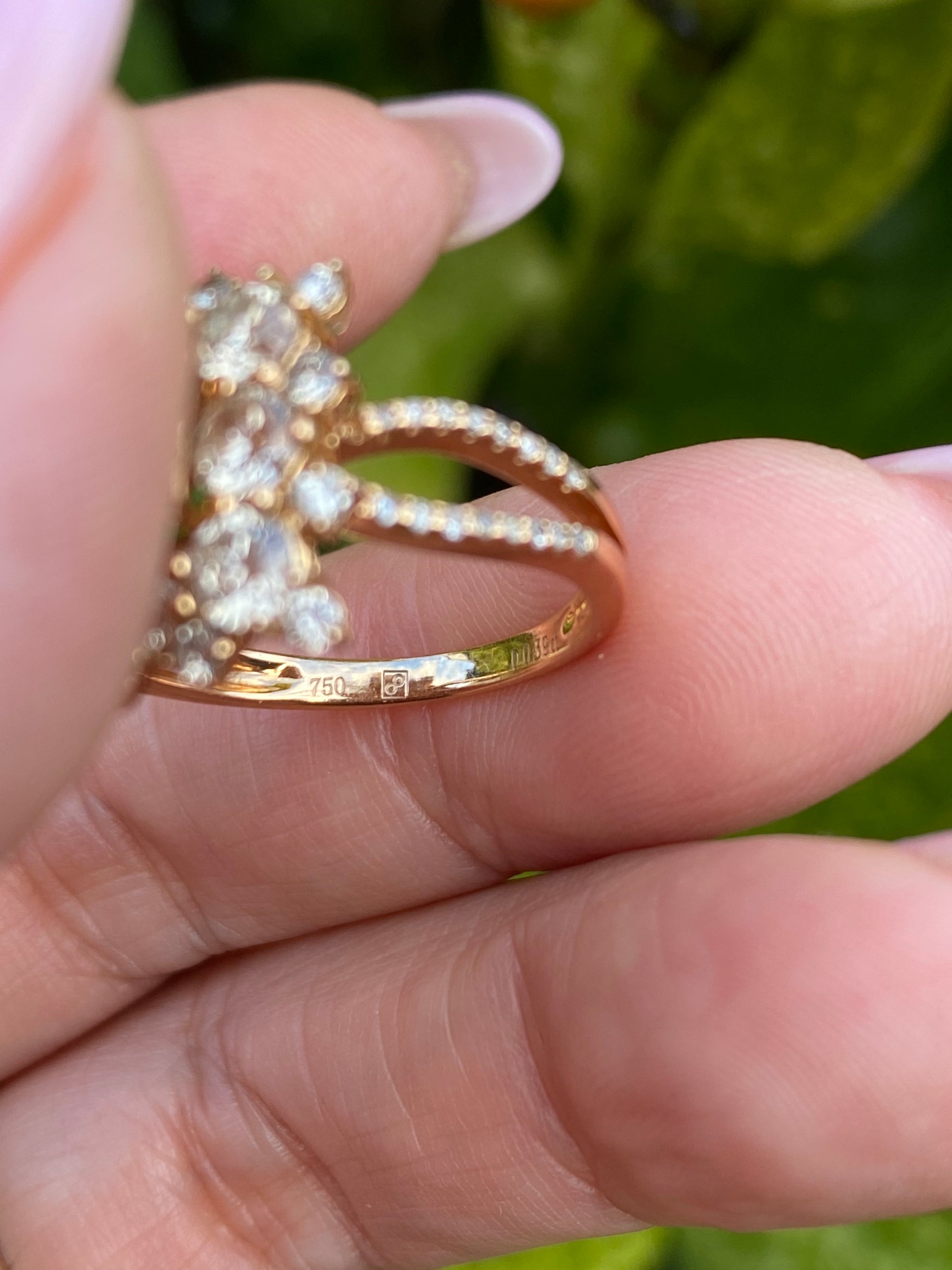 DESCRIPTION A striking 18K gold diamond cluster ring, designed with a layered floral motif and exceptional brilliance from every angle. At the centre is a natural diamond, surrounded by multiple...