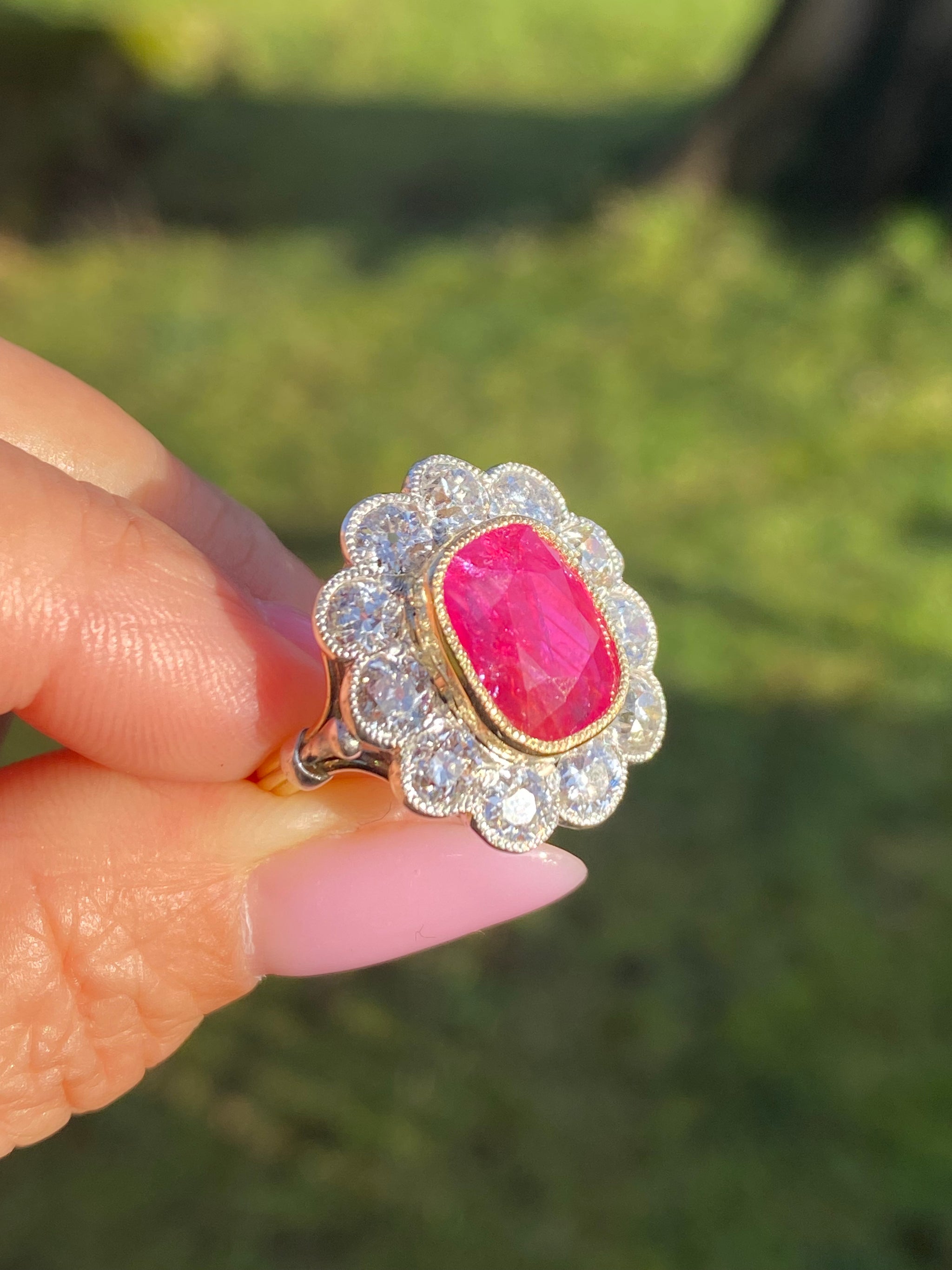 Edwardian Burmese No-Heat Ruby & Diamond Ring | c.1900 | 18K Gold | 5.95ct Natural Ruby | Collector’s Piece